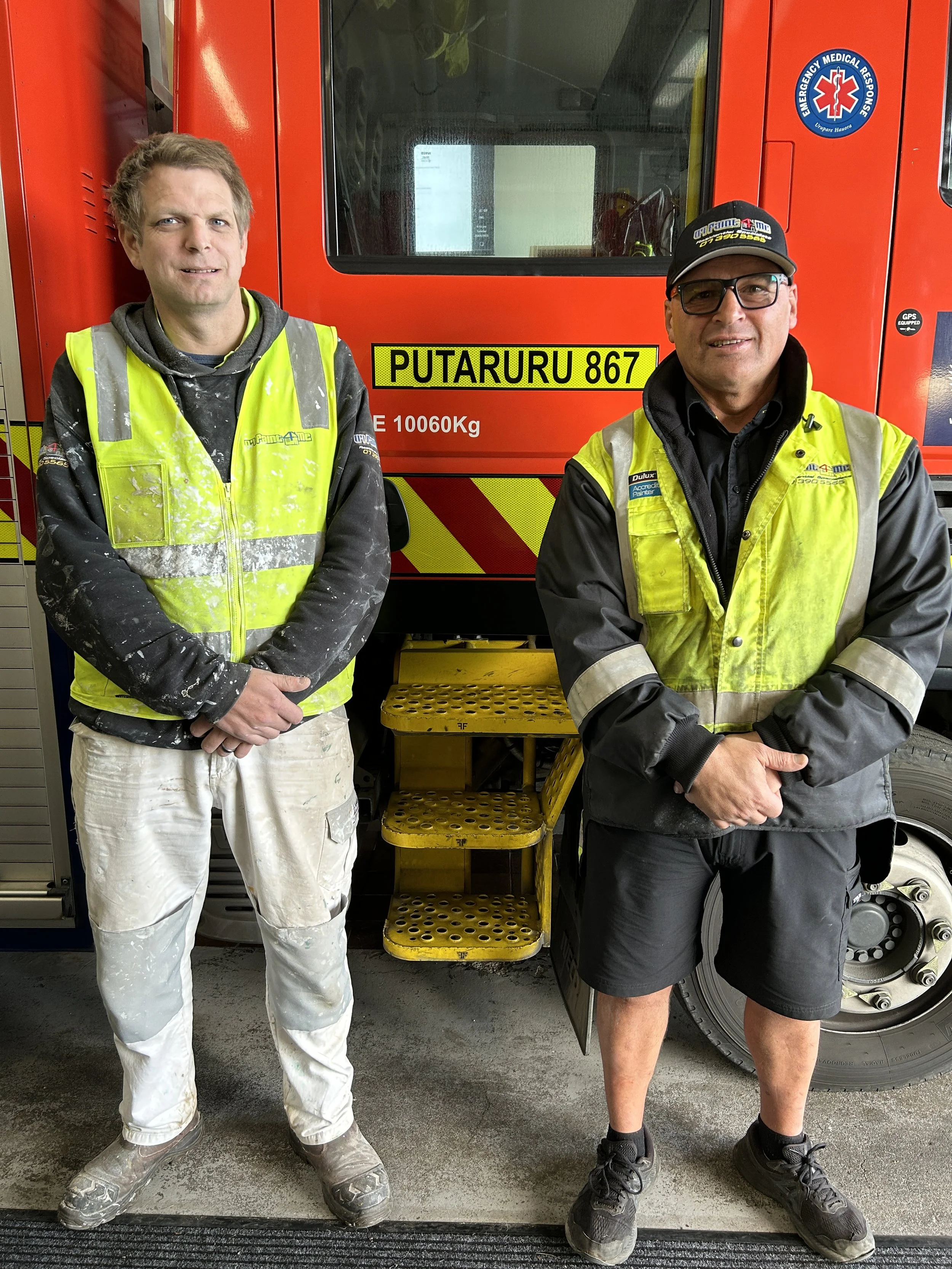 Qualified Fire Fighter Glen Morrison and Senior Fire Fighter Patrick McNicholl from the Putāruru Volunteer Fire Brigade.