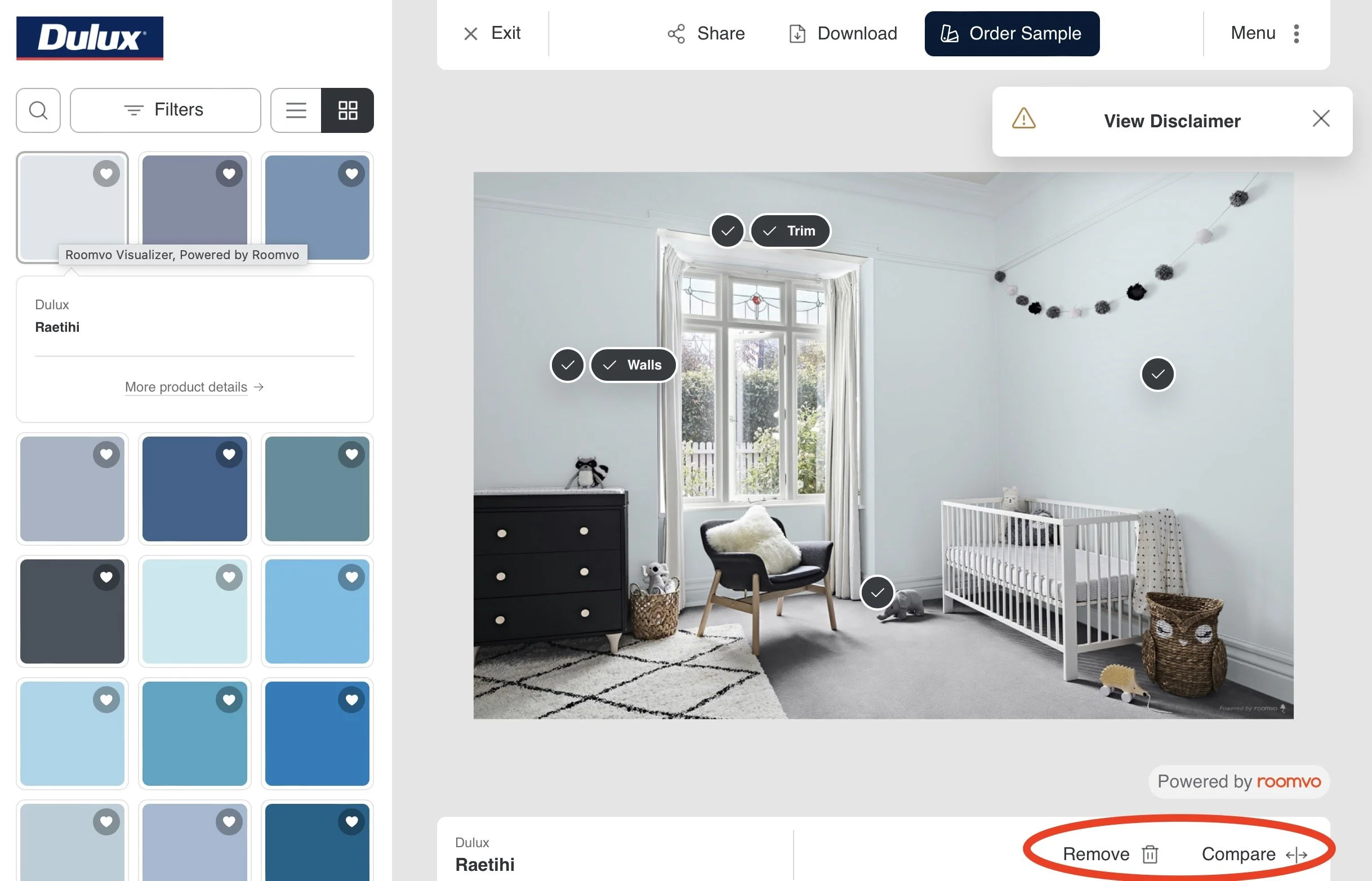 2. Select the ‘View colour in home gallery’ button below the colour blob.